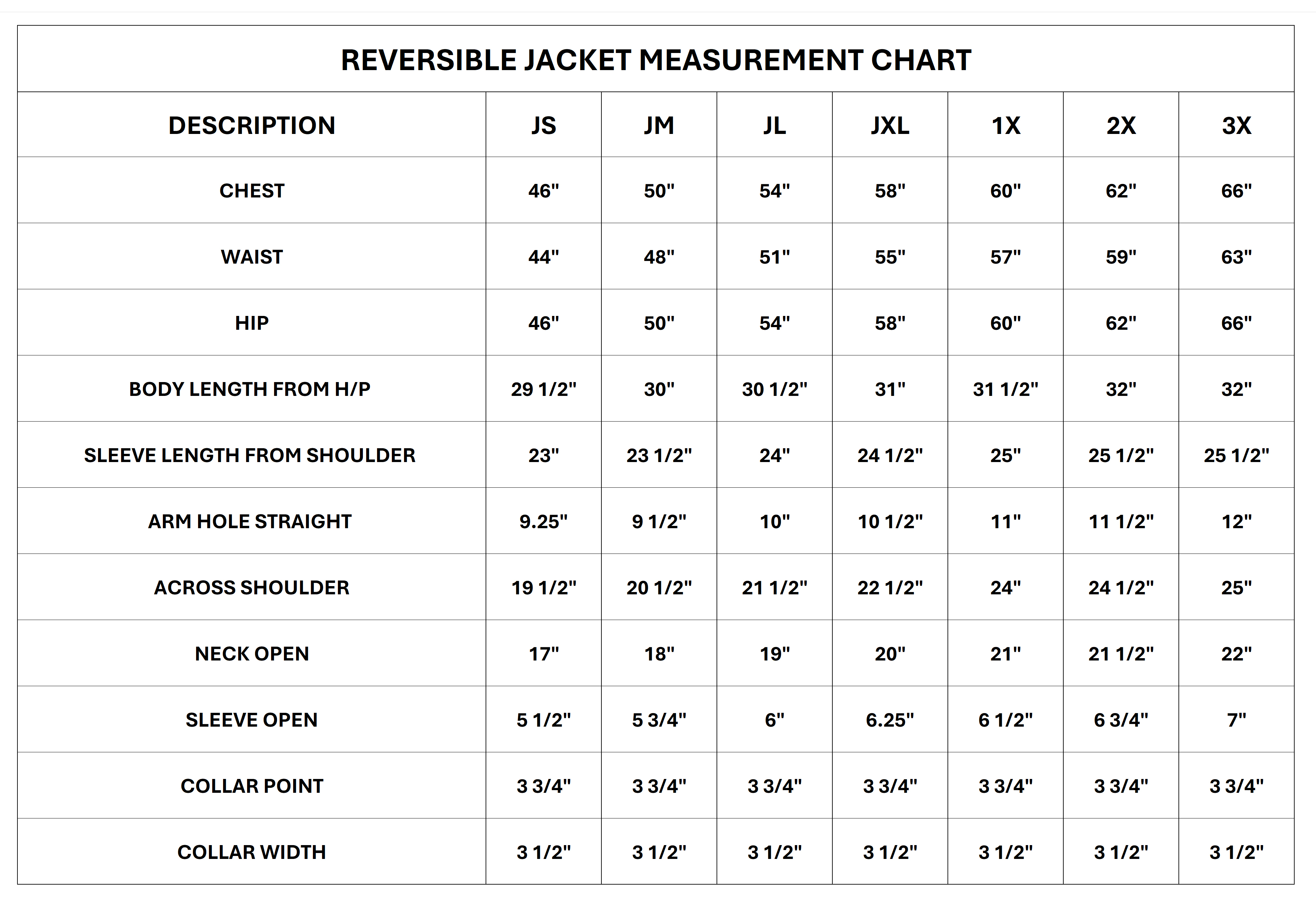 Our jackets come in standard sizes, but if you need a tailored fit, we offer a custom size option for an additional $50.