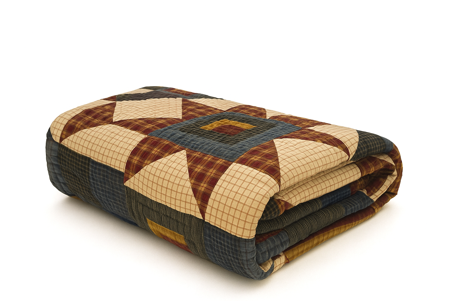 Design: Patchwork stars and plaids with fine stitching detail